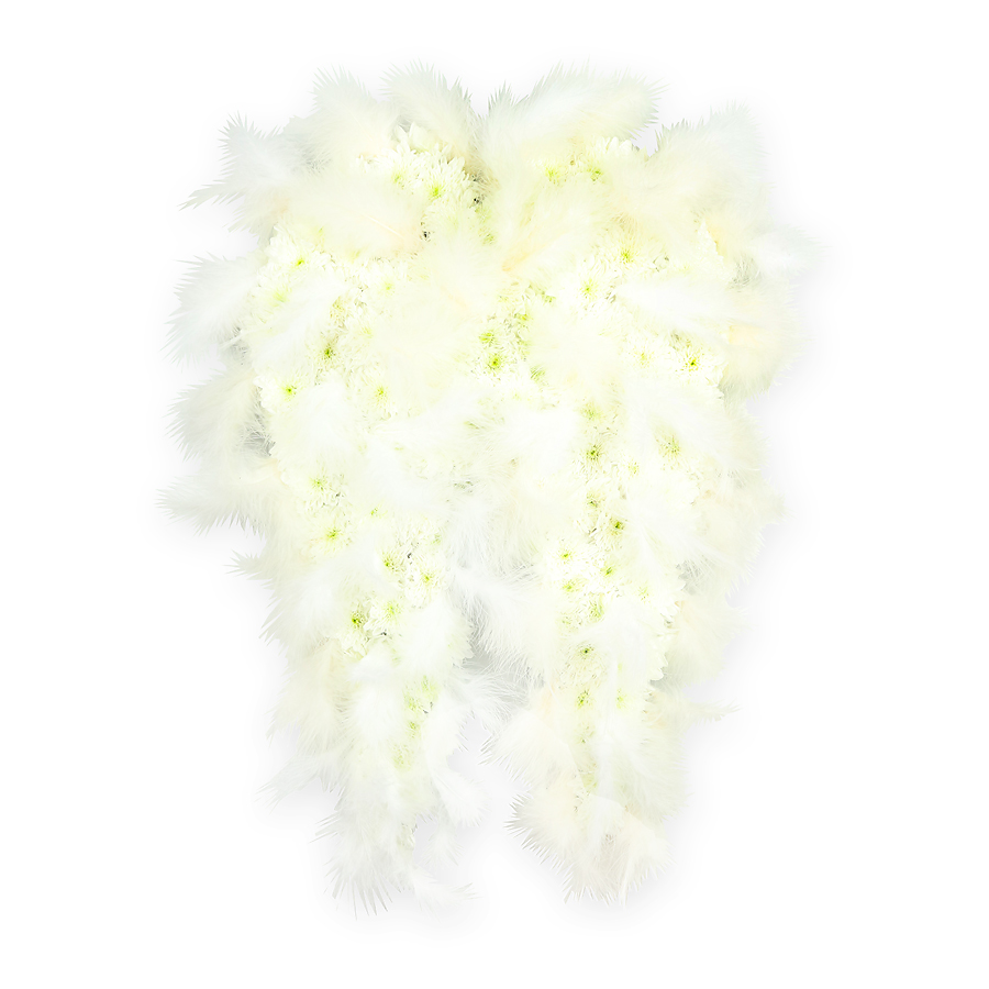 To offer your sincere condolences and prayers during a really painful time, you need a special tribute that will perfectly express your feelings. This elegant floral arrangement is created using fresh white chrysanthemums and white feathers.