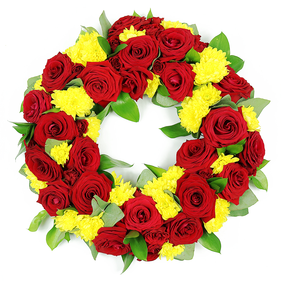 Representing the circle of eternal life, a wreath is a fitting way to honour one whose vivacious spirit will live forever in our memories. Our bright wreath arrangement, artistically handcrafted by our expert florists with a colourful mix of blooms for a lush, full presentation, creates an exquisite tribute for the funeral or memorial service.